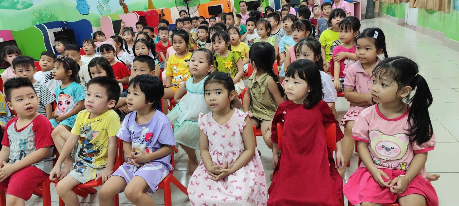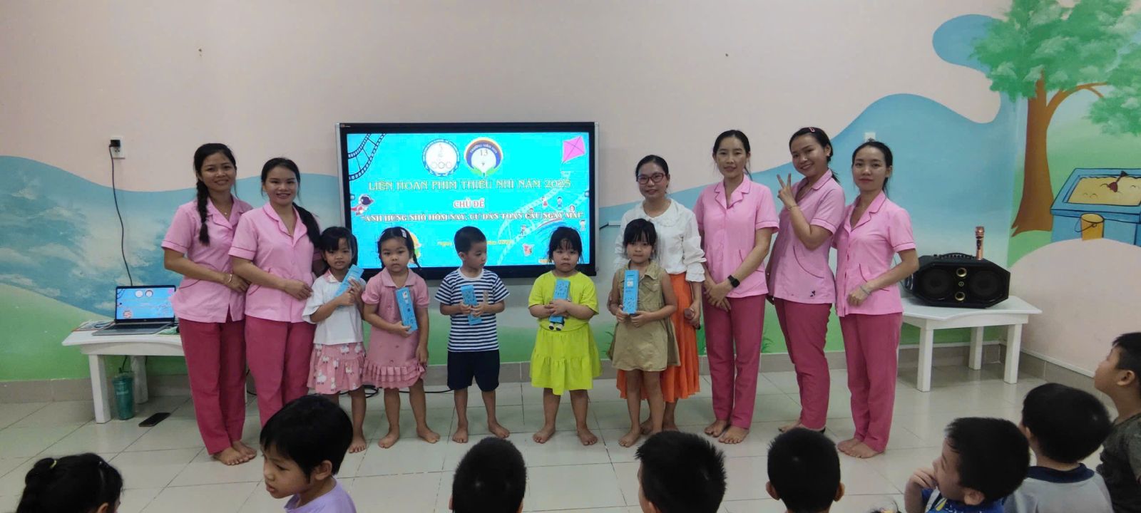Sáng ngày 08/8/2025, Trung tâm Cung ứng dịch vụ văn hóa - thể thao phường Bình Thạnh phối hợp Trường Mầm non 13 (phường Bình Lợi Trung) tổ chức 2 suất chiếu liên hoan phim thiếu nhi chủ đề “Anh hùng nhỏ hôm nay, cư dân toàn cầu ngày mai” cho gần 200 cháu lớp mầm, lớp chồi cùng các cô giáo phụ trách lớp.