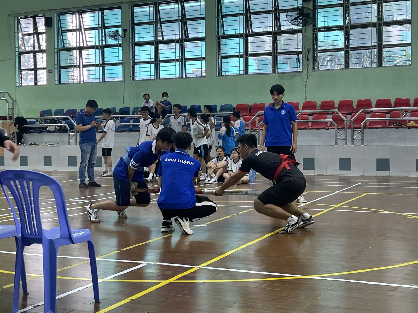 - Vị trí đứng: Người chơi đứng ở hai đầu của cây gỗ, cố gắng đẩy cây về phía bên của đối phương hoặc giữ cây ở vị trí mong muốn.