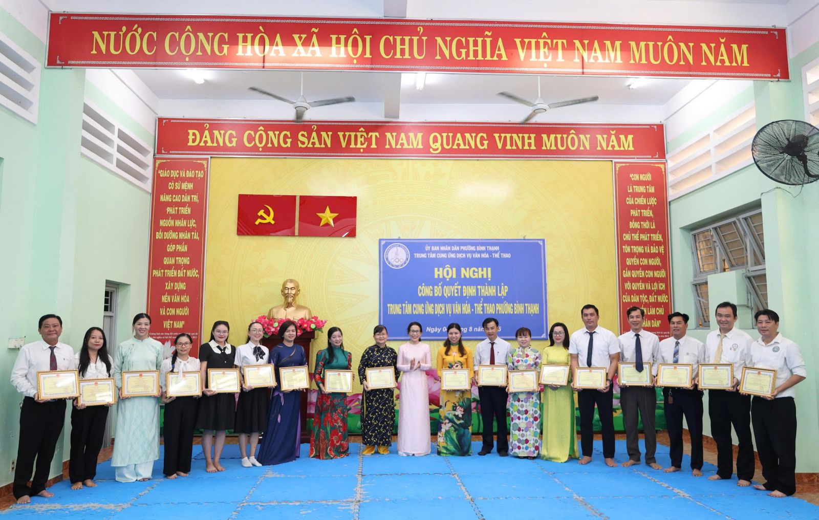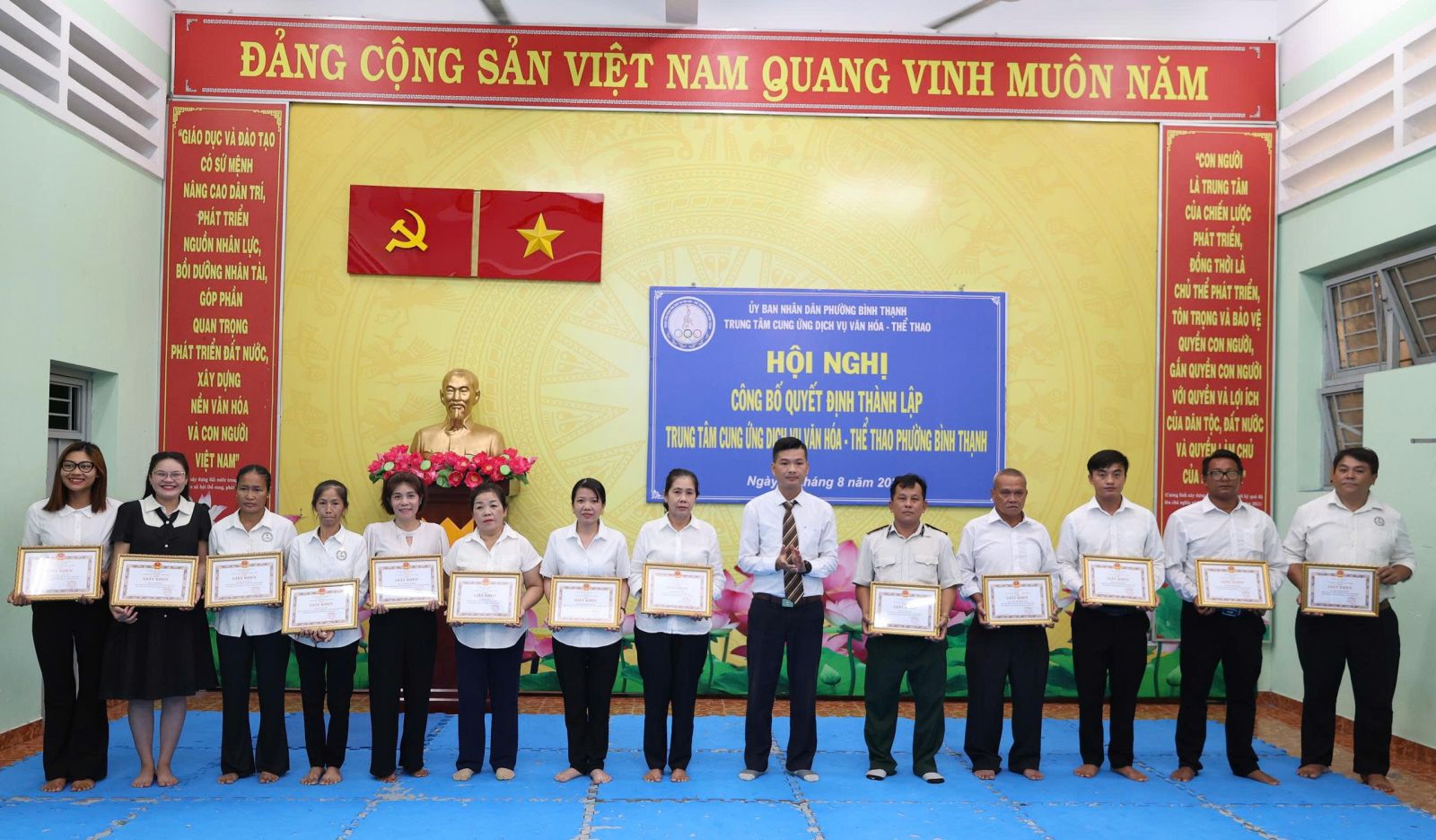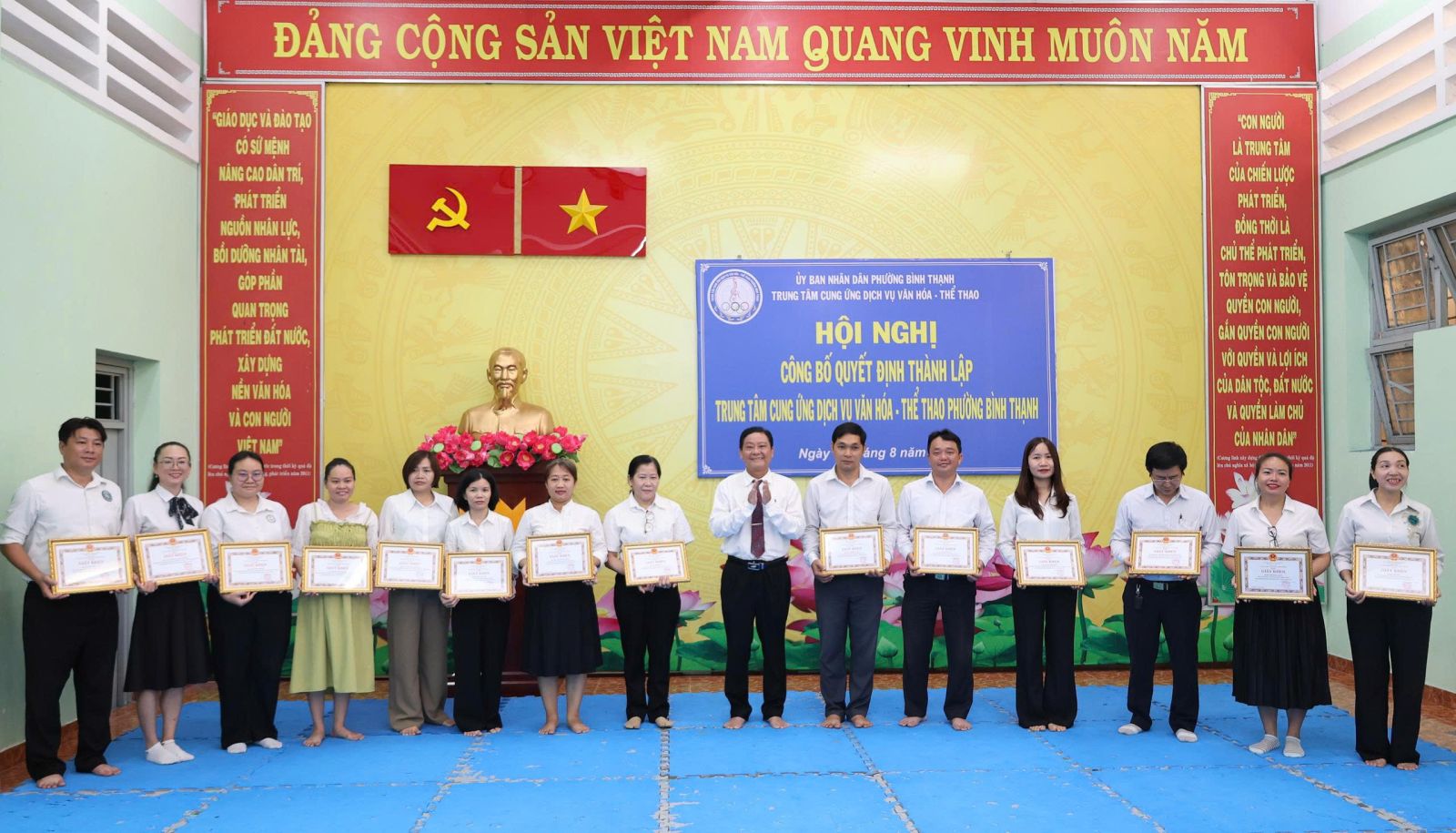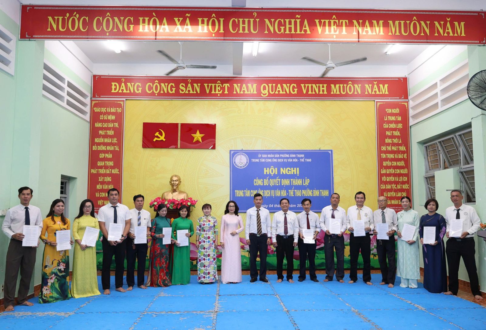 Tại hội nghị, Ban tổ chức công bố quyết định số 24/QĐ-UBND ngày 01/7/2025 của UBND phường Bình Thạnh về thành lập Trung tâm Cung ứng dịch vụ văn hóa - thể thao phường Bình Thạnh trên cơ sở tổ chức lại Trung tâm Văn hóa - Thể thao quận Bình Thạnh, Nhà thiếu nhi quận Bình Thạnh và Nhà văn hóa lao động quận Bình Thạnh. Là đơn vị sự nghiệp công lập trực thuộc UBND phường Bình Thạnh, thực hiện cơ chế tự chủ, tự chịu trách nhiệm theo quy định. Đơn vị có 7 cơ sở, trụ sở chính: số 08 đường Phan Đăng Lưu, phường Bình Thạnh (Câu lạc bộ số 8: các lớp về thể dục - thể thao); cơ sở 2: số 140, 142, 144 đường Lê Văn Duyệt, phường Gia Định (Thư viện, các lớp năng khiếu về văn hóa văn nghệ); cơ sở 3: số 02 đường Nơ Trang Long, phường Bình Thạnh (CLB Quần vợt); cơ sở 4: số 25A đường Nơ Trang Long, phường Gia Định (CLB Bơi lội Đại Đồng); cơ sở 5: số 2A đường Phan Chu Trinh, phường Bình Thạnh (CLB Sân vận động Gia Định); cơ sở 6: số 6B đường Phan Đăng Lưu, phường Bình Thạnh (Nhà Truyền thống); cơ sở 7: Số 20 đường Thanh Đa, phường Bình Quới (Nhà Văn hóa Thanh Đa). Hoạt động chính thức kể từ ngày 01/7/2025.
