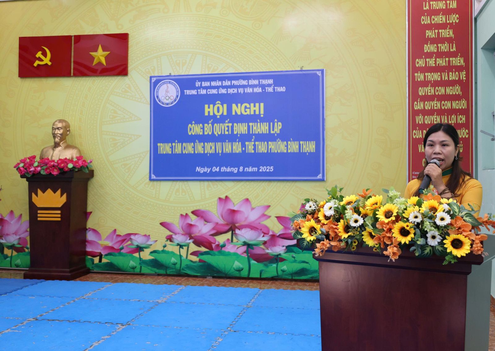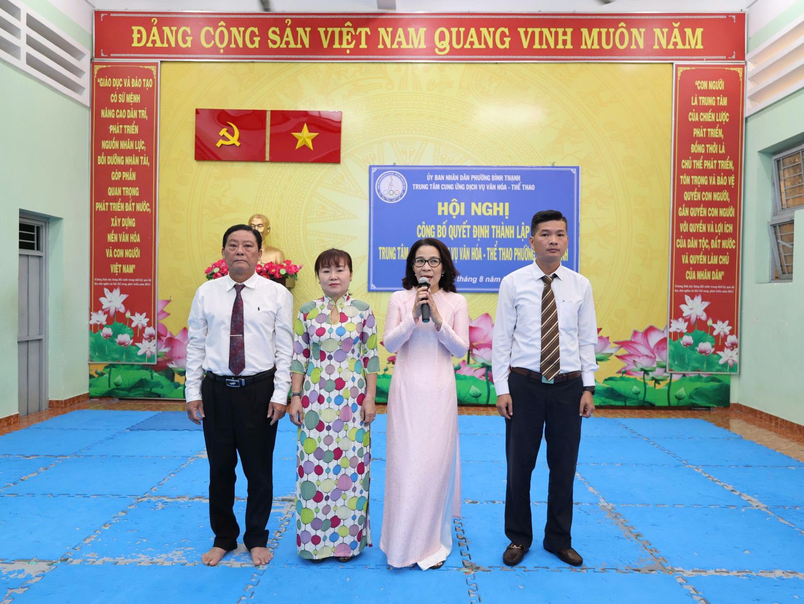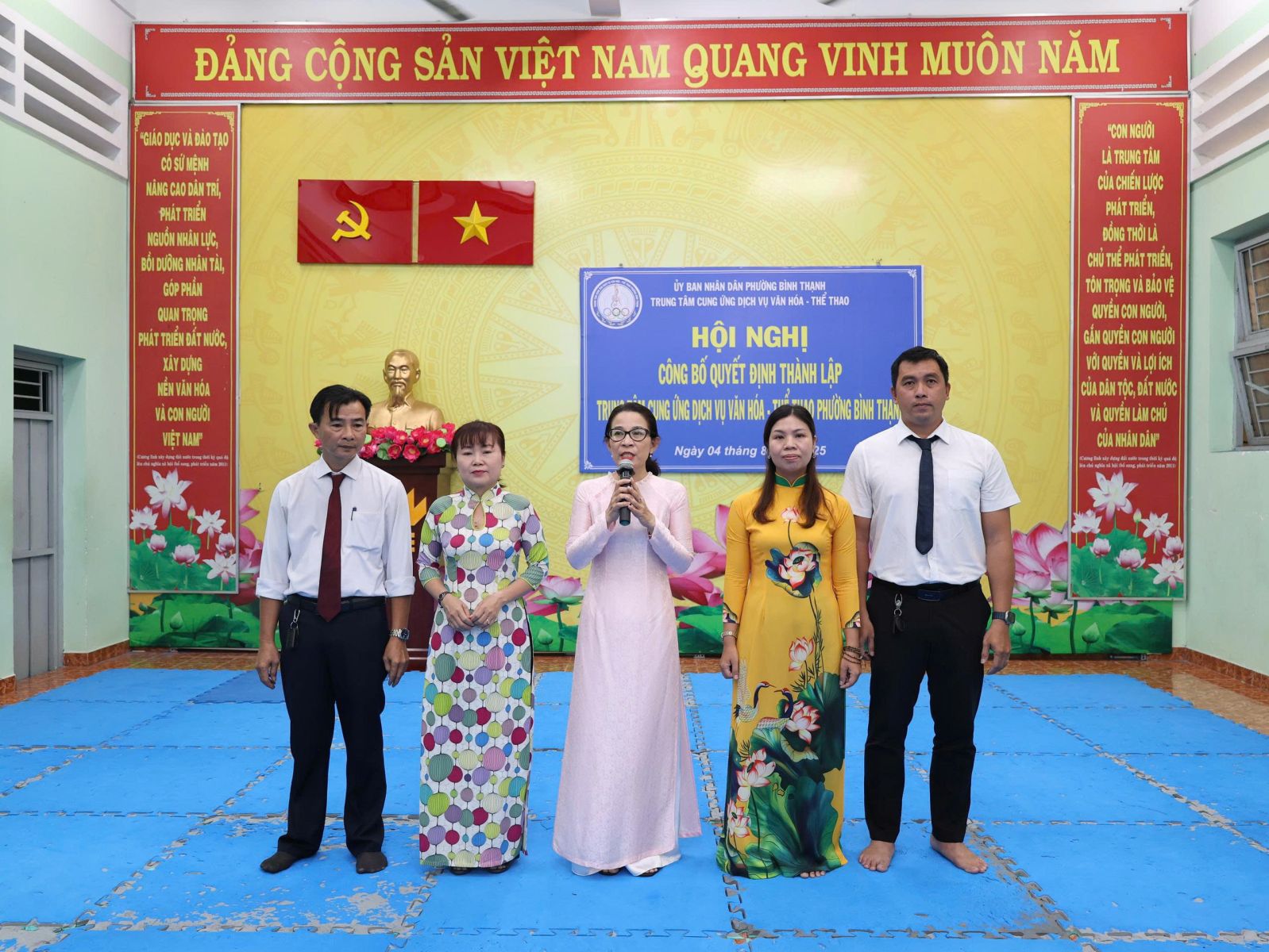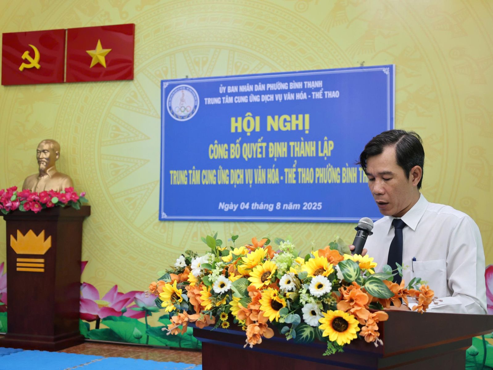 Tại hội nghị, Ban tổ chức công bố quyết định số 24/QĐ-UBND ngày 01/7/2025 của UBND phường Bình Thạnh về thành lập Trung tâm Cung ứng dịch vụ văn hóa - thể thao phường Bình Thạnh trên cơ sở tổ chức lại Trung tâm Văn hóa - Thể thao quận Bình Thạnh, Nhà thiếu nhi quận Bình Thạnh và Nhà văn hóa lao động quận Bình Thạnh. Là đơn vị sự nghiệp công lập trực thuộc UBND phường Bình Thạnh, thực hiện cơ chế tự chủ, tự chịu trách nhiệm theo quy định. Đơn vị có 7 cơ sở, trụ sở chính: số 08 đường Phan Đăng Lưu, phường Bình Thạnh (Câu lạc bộ số 8: các lớp về thể dục - thể thao); cơ sở 2: số 140, 142, 144 đường Lê Văn Duyệt, phường Gia Định (Thư viện, các lớp năng khiếu về văn hóa văn nghệ); cơ sở 3: số 02 đường Nơ Trang Long, phường Bình Thạnh (CLB Quần vợt); cơ sở 4: số 25A đường Nơ Trang Long, phường Gia Định (CLB Bơi lội Đại Đồng); cơ sở 5: số 2A đường Phan Chu Trinh, phường Bình Thạnh (CLB Sân vận động Gia Định); cơ sở 6: số 6B đường Phan Đăng Lưu, phường Bình Thạnh (Nhà Truyền thống); cơ sở 7: Số 20 đường Thanh Đa, phường Bình Quới (Nhà Văn hóa Thanh Đa). Hoạt động chính thức kể từ ngày 01/7/2025.