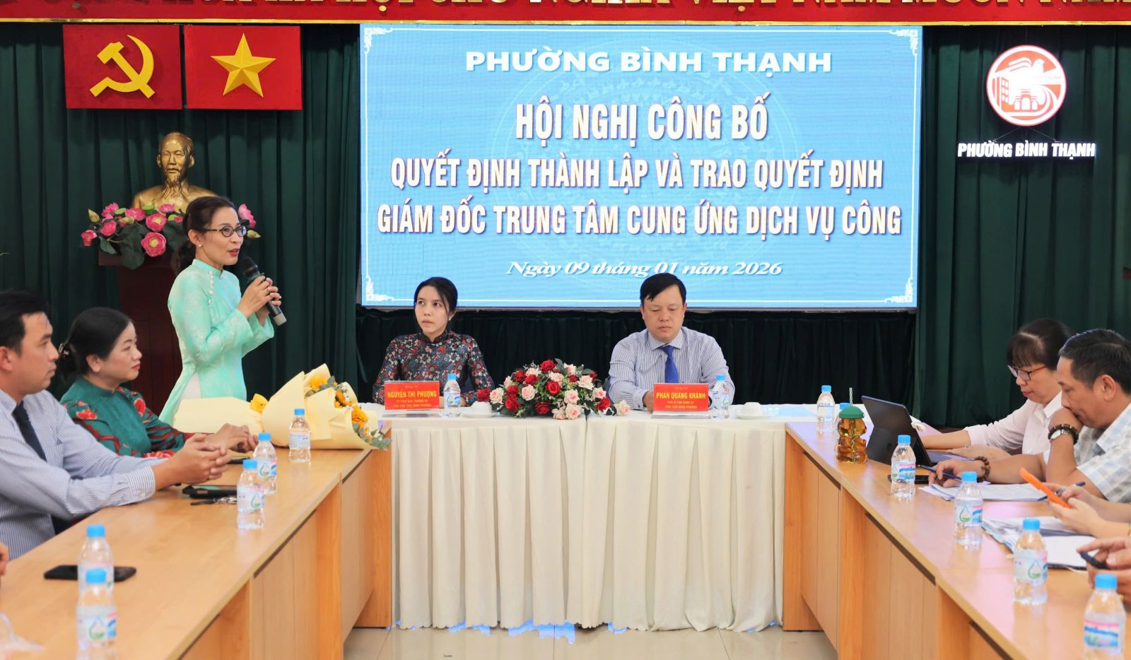 Ngày 09/01/2026, Ủy ban nhân dân phường Bình Thạnh tổ chức hội nghị công bố quyết định thành lập và trao quyết định Giám đốc Trung tâm Cung ứng dịch vụ công phường Bình Thạnh.