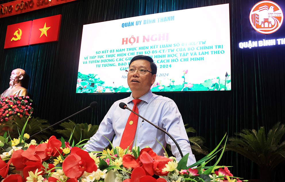 Ngày 11/6/2024, Quận ủy quận Bình Thạnh tổ chức hội nghị sơ kết 3 năm thực hiện Kết luận số 01-KL/TW về tiếp tục thực hiện Chỉ thị số 05-CT/TW của Bộ Chính trị và tuyên dương các gương điển hình học tập và làm theo tư tưởng, đạo đức, phong cách Hồ Chí Minh giai đoạn 2021 - 2024.