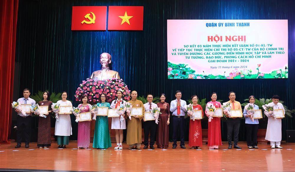 Quận Bình Thạnh có 1 cá nhân nhận Bằng khen của Ban Tuyên giáo Trung ương; 2 tập thể, 3 cá nhân nhận Bằng khen của Thành ủy TPHCM. Dịp này, Ủy ban nhân dân quận tặng giấy khen cho 159 cá nhân điển hình thực hiện tốt việc học tập và làm theo tư tưởng, đạo đức, phong cách Hồ Chí Minh giai đoạn 2021 - 2024.