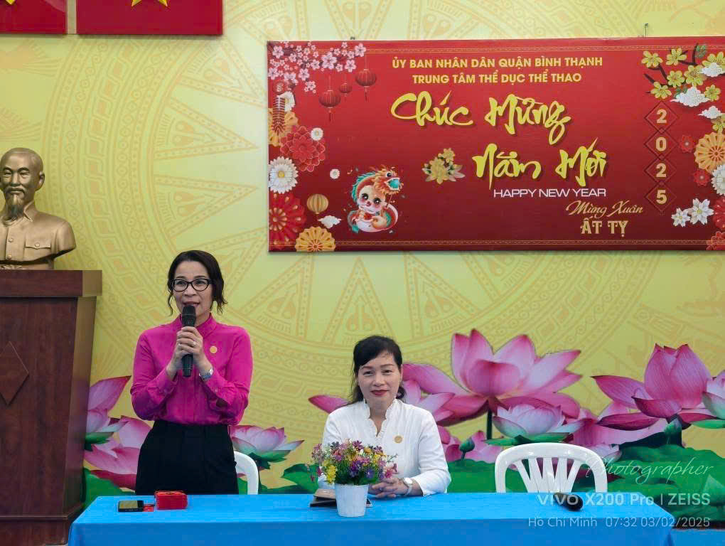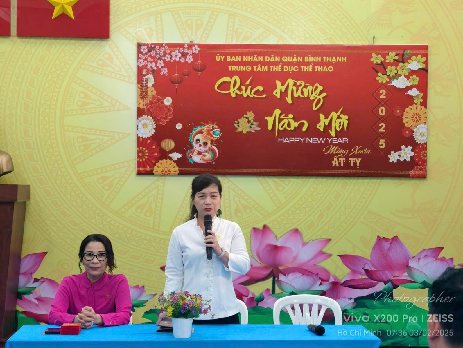 Tại buổi gặp mặt, đồng chí Nguyễn Thị Ngọc Loan – Quận ủy viên, Giám đốc Trung tâm – đã báo cáo tóm tắt những thành tựu nổi bật trong năm qua. Đặc biệt, Trung tâm Thể dục Thể thao quận Bình Thạnh đã xuất sắc đạt HẠNG NHẤT cụm thi đua khối thể thao Cụm 2 của TP. Hồ Chí Minh năm 2024, khẳng định vị thế là một trong những đơn vị dẫn đầu trong phong trào thể thao thành phố.