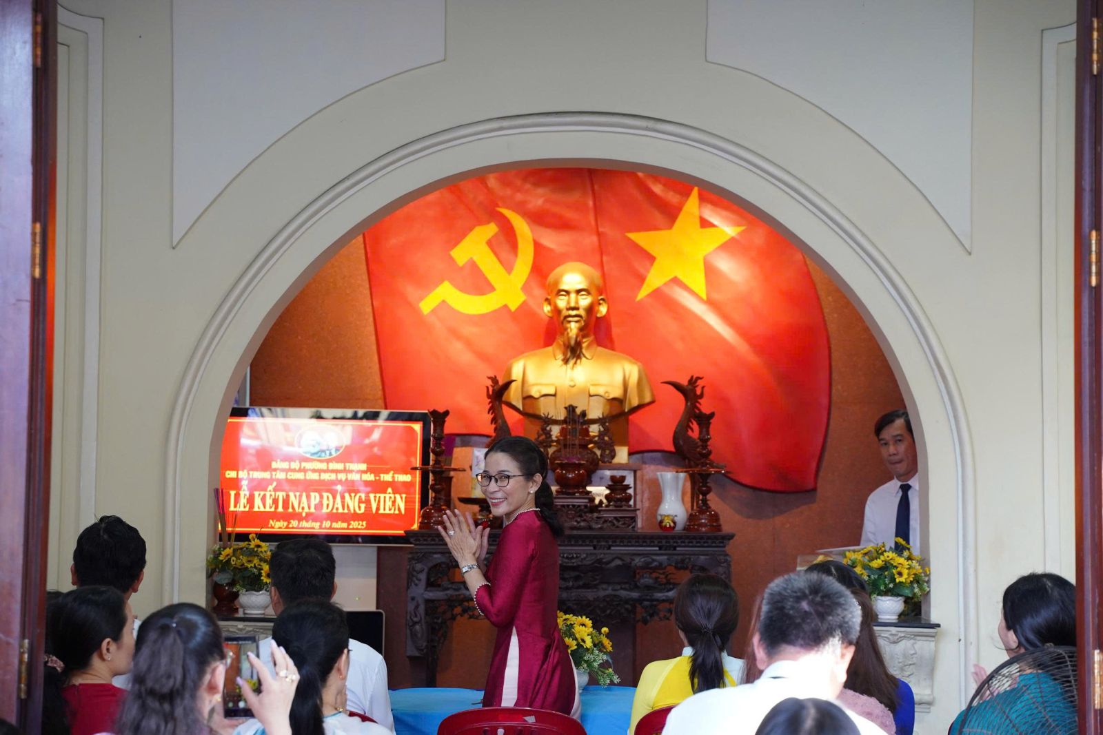 Ngày 20/10/2025, Chi bộ Trung tâm Cung ứng dịch vụ văn hóa – thể thao phường Bình Thạnh tổ chức lễ kết nạp đảng viên cho quần chúng ưu tú Lâm Kiều Mỹ, Trưởng bộ môn Petanque.