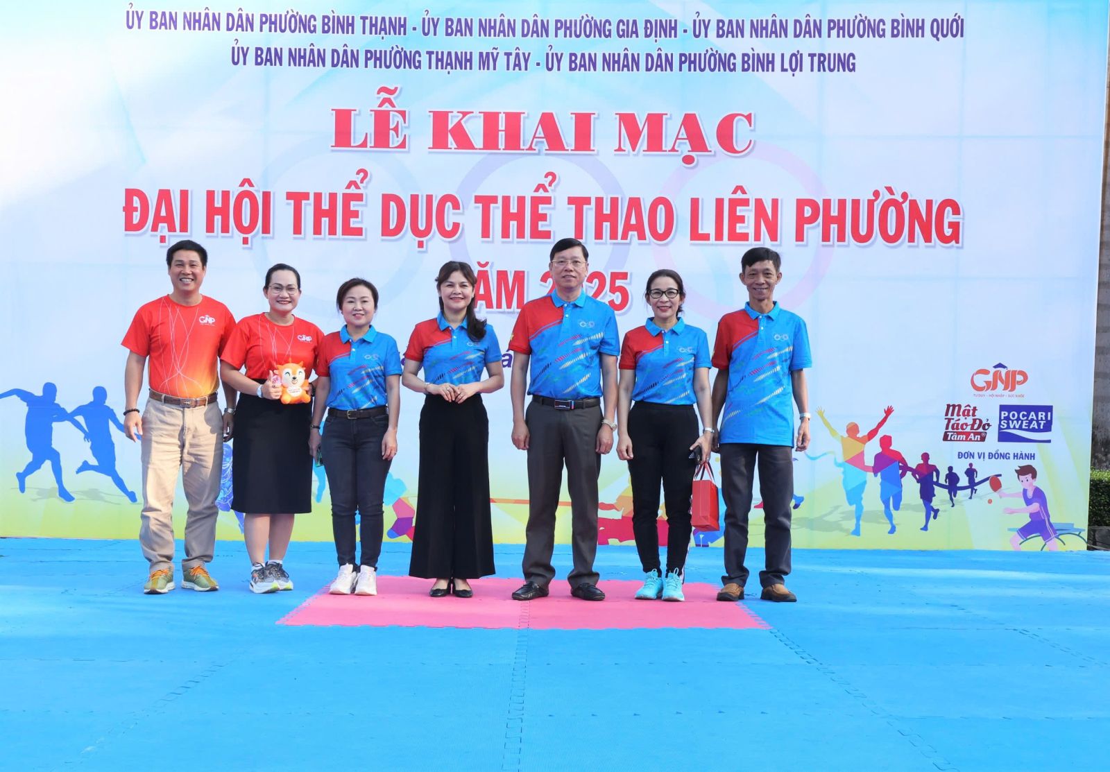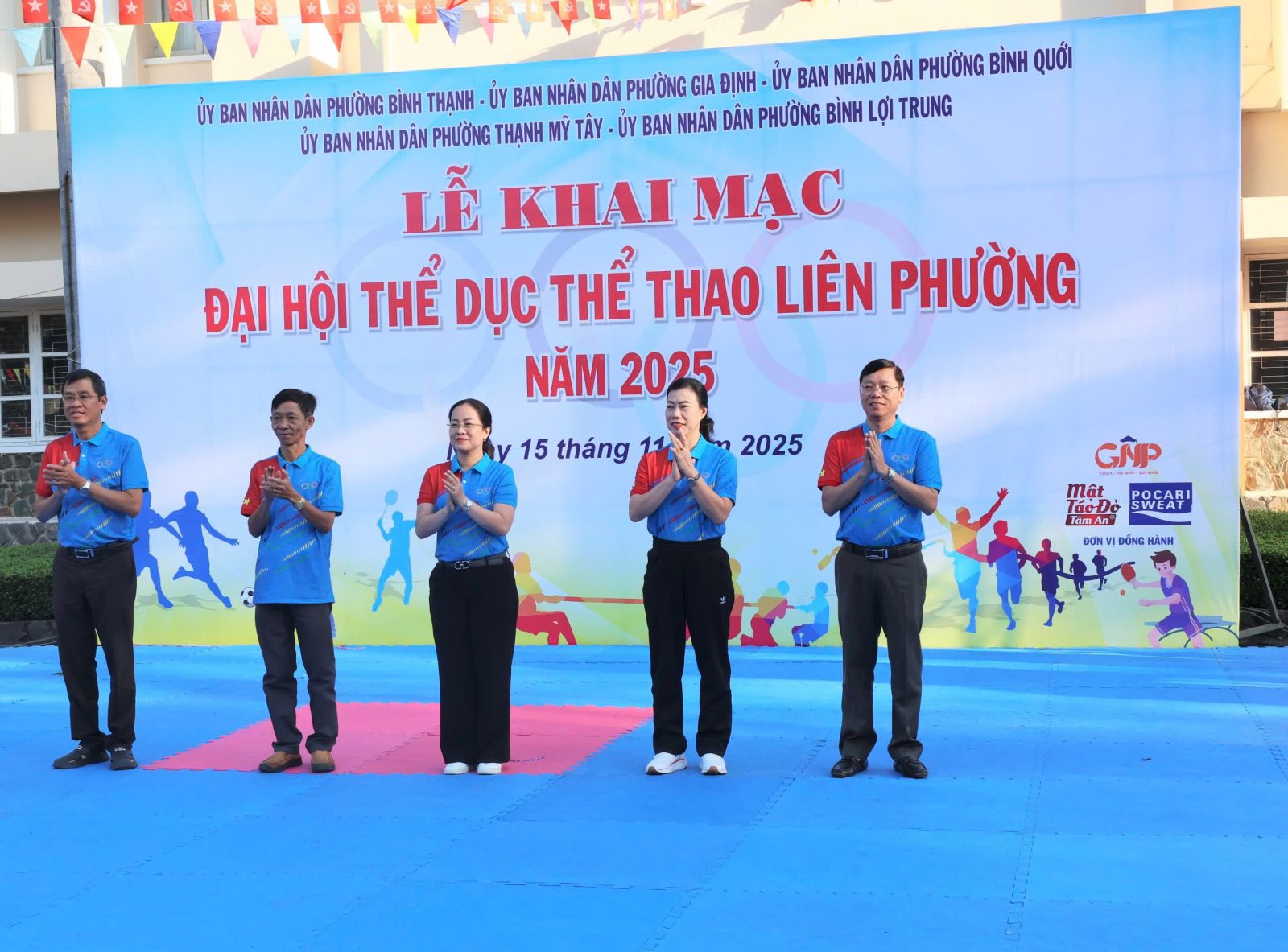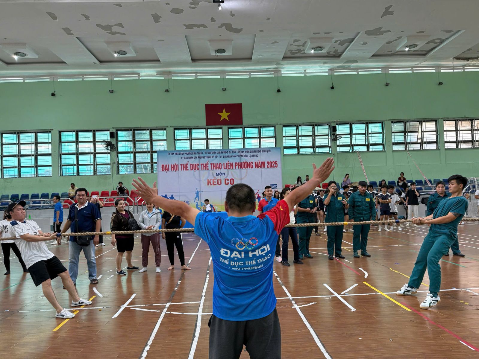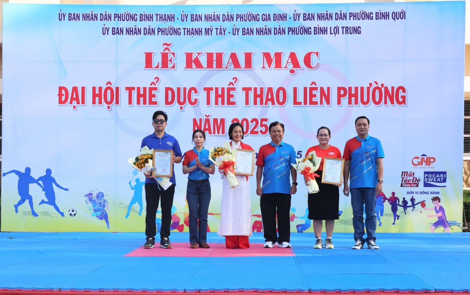 Ban Tổ chức trao cờ lưu niệm cho đại diện UBND 5 phường và Trung tâm Cung ứng Dịch vụ Văn hóa – Thể thao; đồng thời tặng hoa và Thư cảm ơn đến các đơn vị đồng hành. Theo kế hoạch, Đại hội Thể dục Thể thao liên phường năm 2025 diễn ra từ tháng 11 đến tháng 12/2025 với 8 môn thi đấu: Bóng bàn, Bóng đá, Bơi lội, Cầu lông, Cờ tướng, Điền kinh, Kéo co và Pickleball. Ngay sau lễ khai mạc, nội dung thi đấu đầu tiên, môn Kéo co được tổ chức tại Nhà thi đấu Trung tâm Cung ứng Dịch vụ Văn hóa – Thể thao phường Bình Thạnh, kết quả chung cuộc.