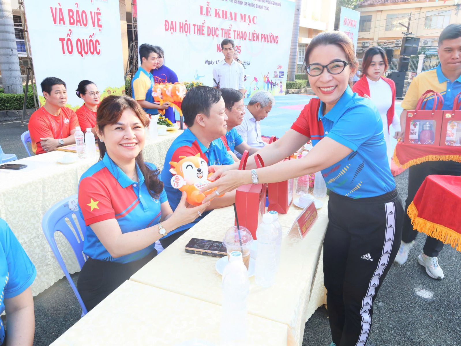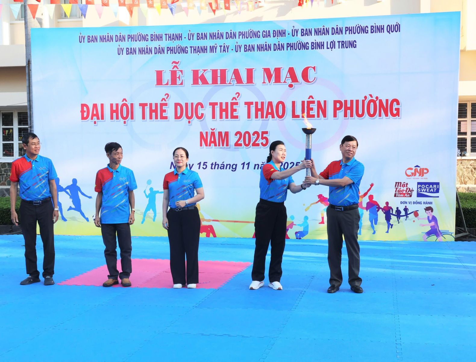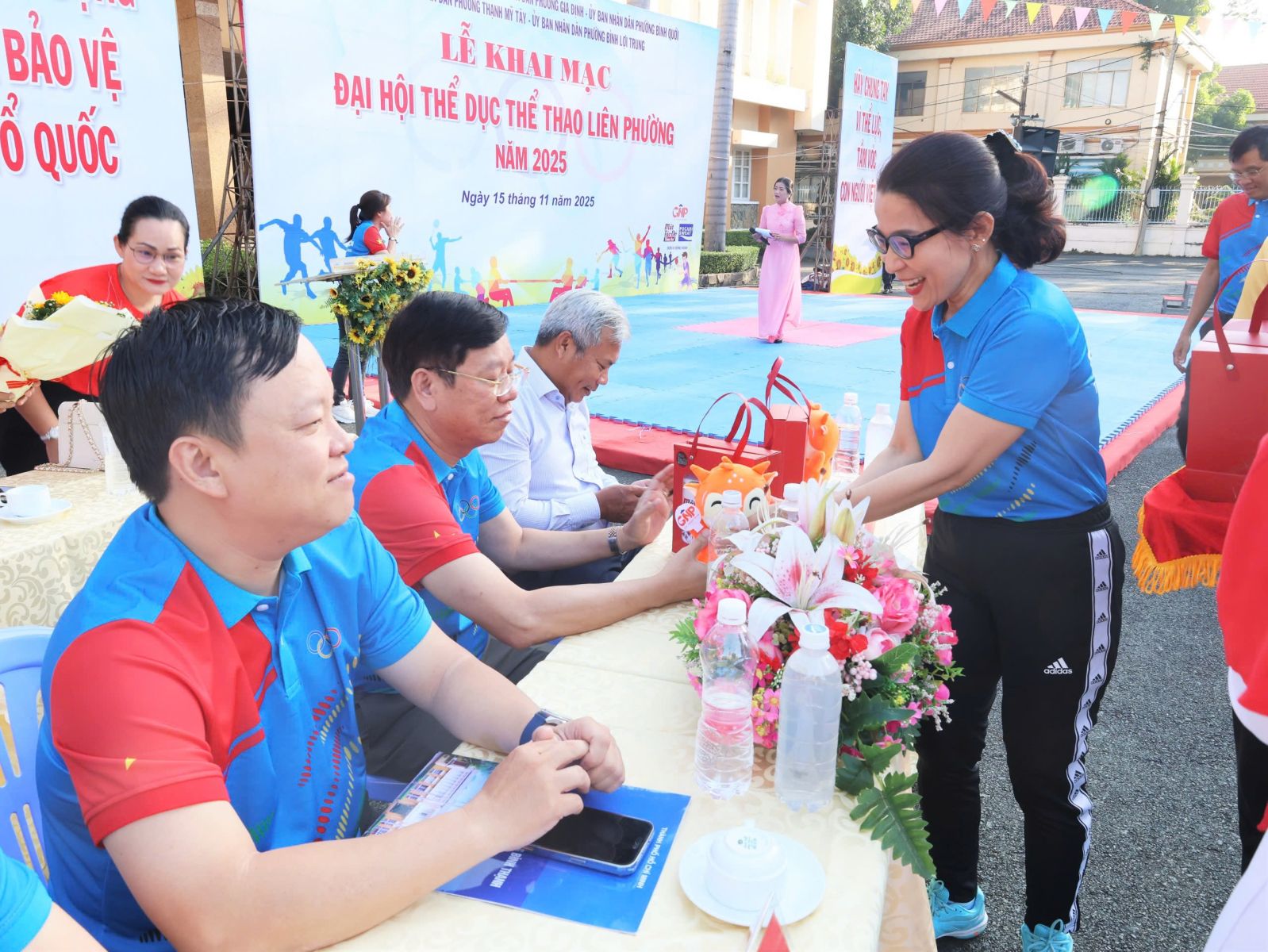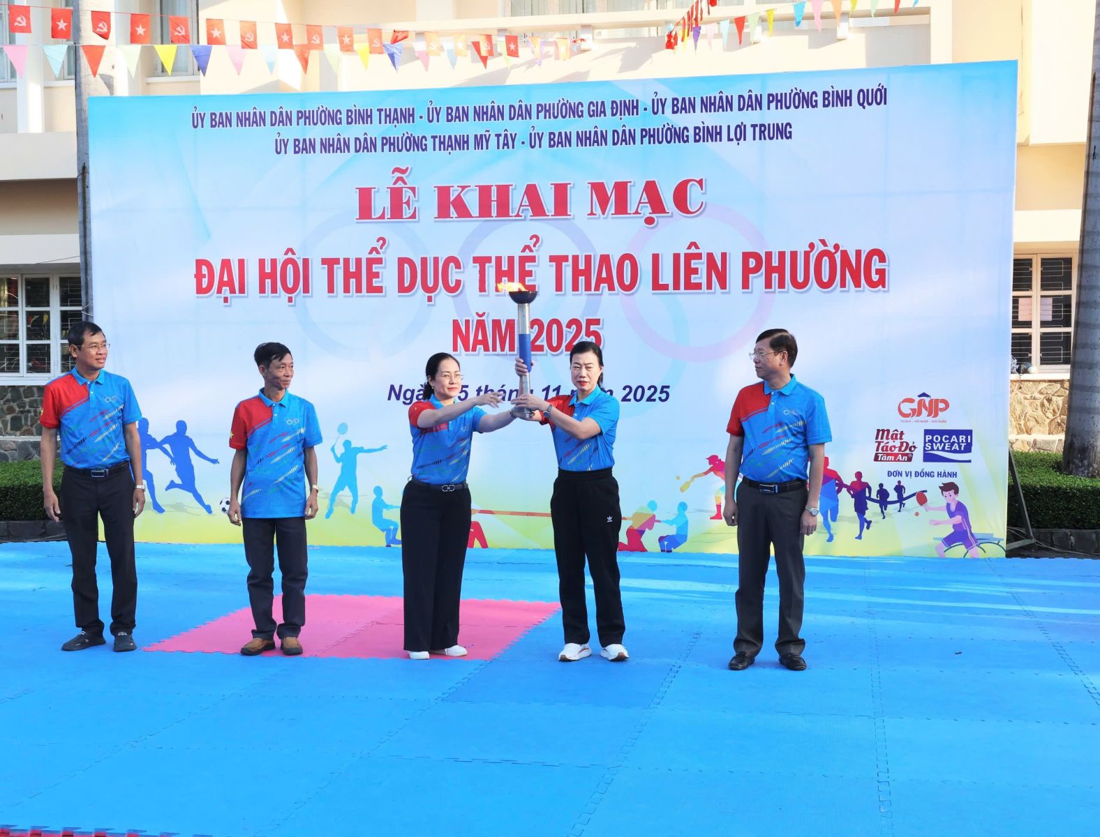 Ban Tổ chức trao cờ lưu niệm cho đại diện UBND 5 phường và Trung tâm Cung ứng Dịch vụ Văn hóa – Thể thao; đồng thời tặng hoa và Thư cảm ơn đến các đơn vị đồng hành. Theo kế hoạch, Đại hội Thể dục Thể thao liên phường năm 2025 diễn ra từ tháng 11 đến tháng 12/2025 với 8 môn thi đấu: Bóng bàn, Bóng đá, Bơi lội, Cầu lông, Cờ tướng, Điền kinh, Kéo co và Pickleball. Ngay sau lễ khai mạc, nội dung thi đấu đầu tiên, môn Kéo co được tổ chức tại Nhà thi đấu Trung tâm Cung ứng Dịch vụ Văn hóa – Thể thao phường Bình Thạnh, kết quả chung cuộc.