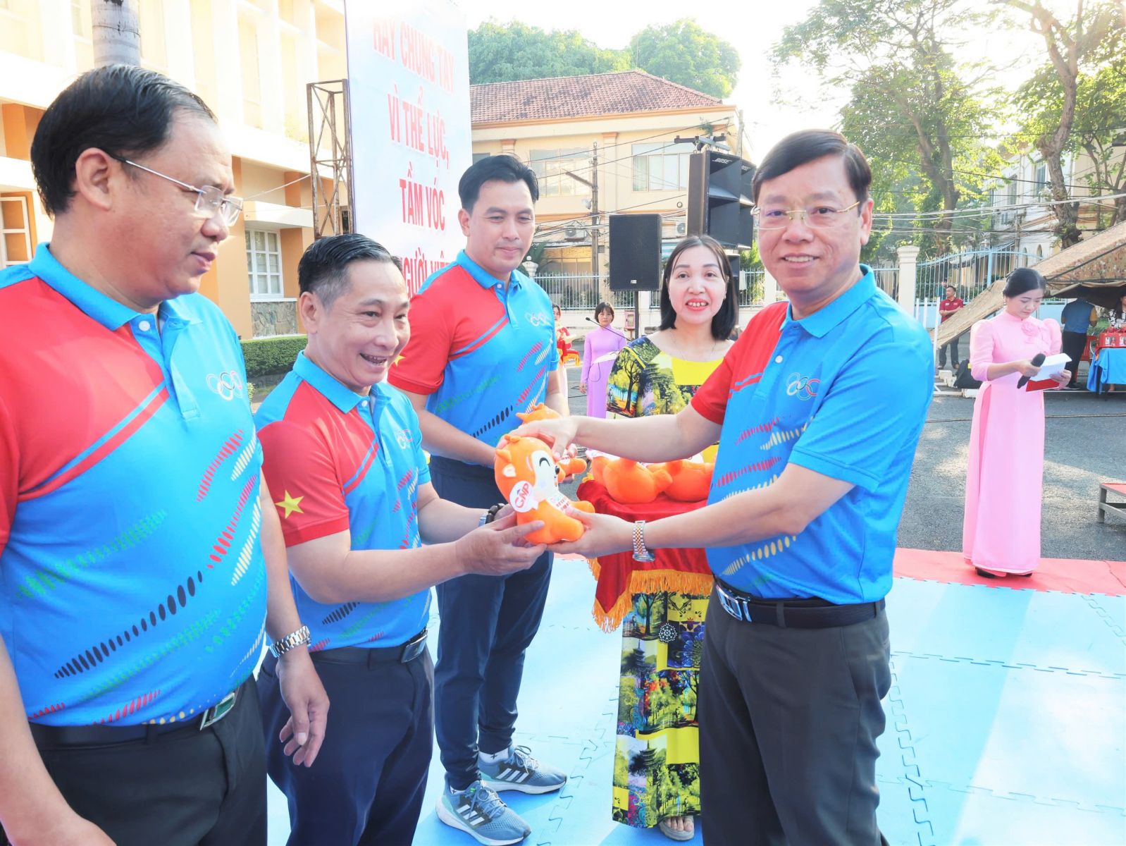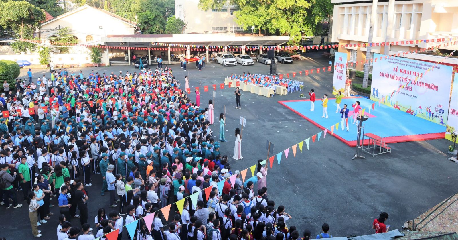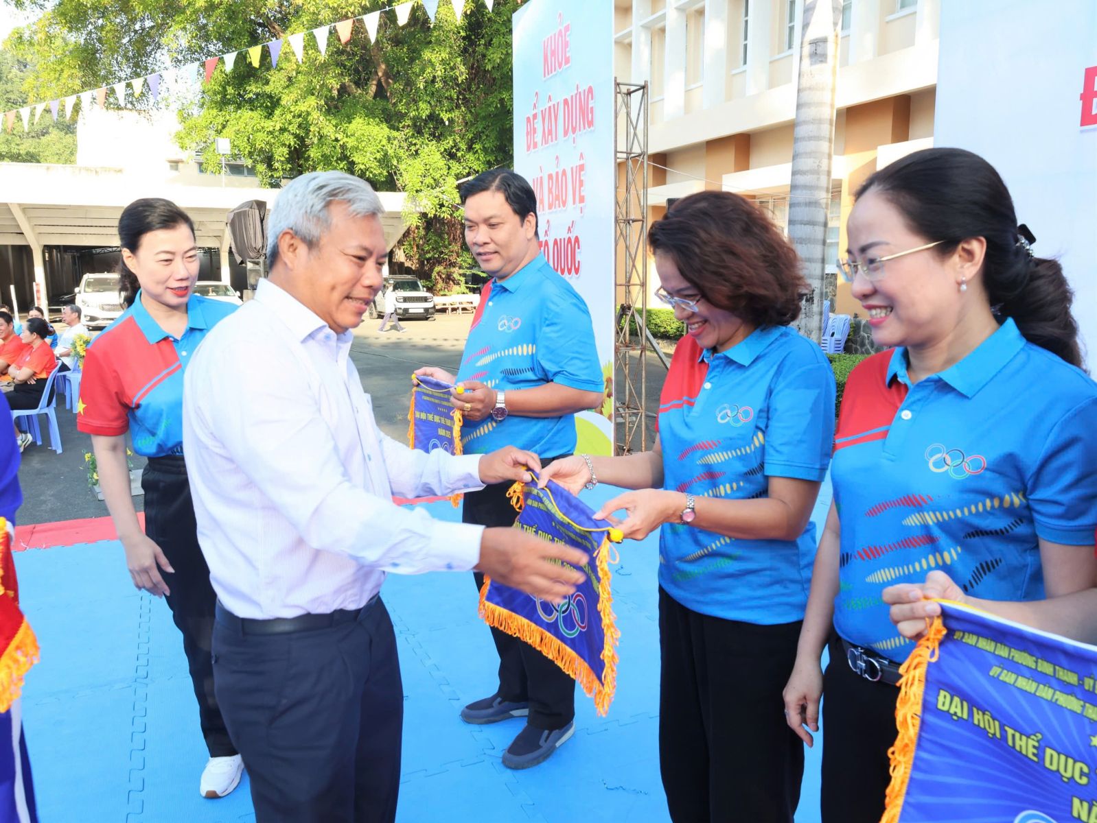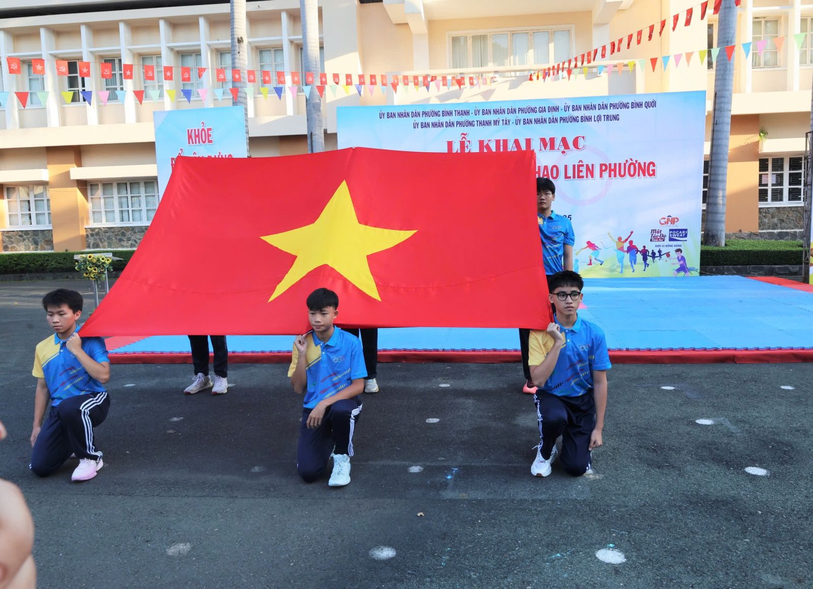 Ban Tổ chức trao cờ lưu niệm cho đại diện UBND 5 phường và Trung tâm Cung ứng Dịch vụ Văn hóa – Thể thao; đồng thời tặng hoa và Thư cảm ơn đến các đơn vị đồng hành. Theo kế hoạch, Đại hội Thể dục Thể thao liên phường năm 2025 diễn ra từ tháng 11 đến tháng 12/2025 với 8 môn thi đấu: Bóng bàn, Bóng đá, Bơi lội, Cầu lông, Cờ tướng, Điền kinh, Kéo co và Pickleball. Ngay sau lễ khai mạc, nội dung thi đấu đầu tiên, môn Kéo co được tổ chức tại Nhà thi đấu Trung tâm Cung ứng Dịch vụ Văn hóa – Thể thao phường Bình Thạnh, kết quả chung cuộc.