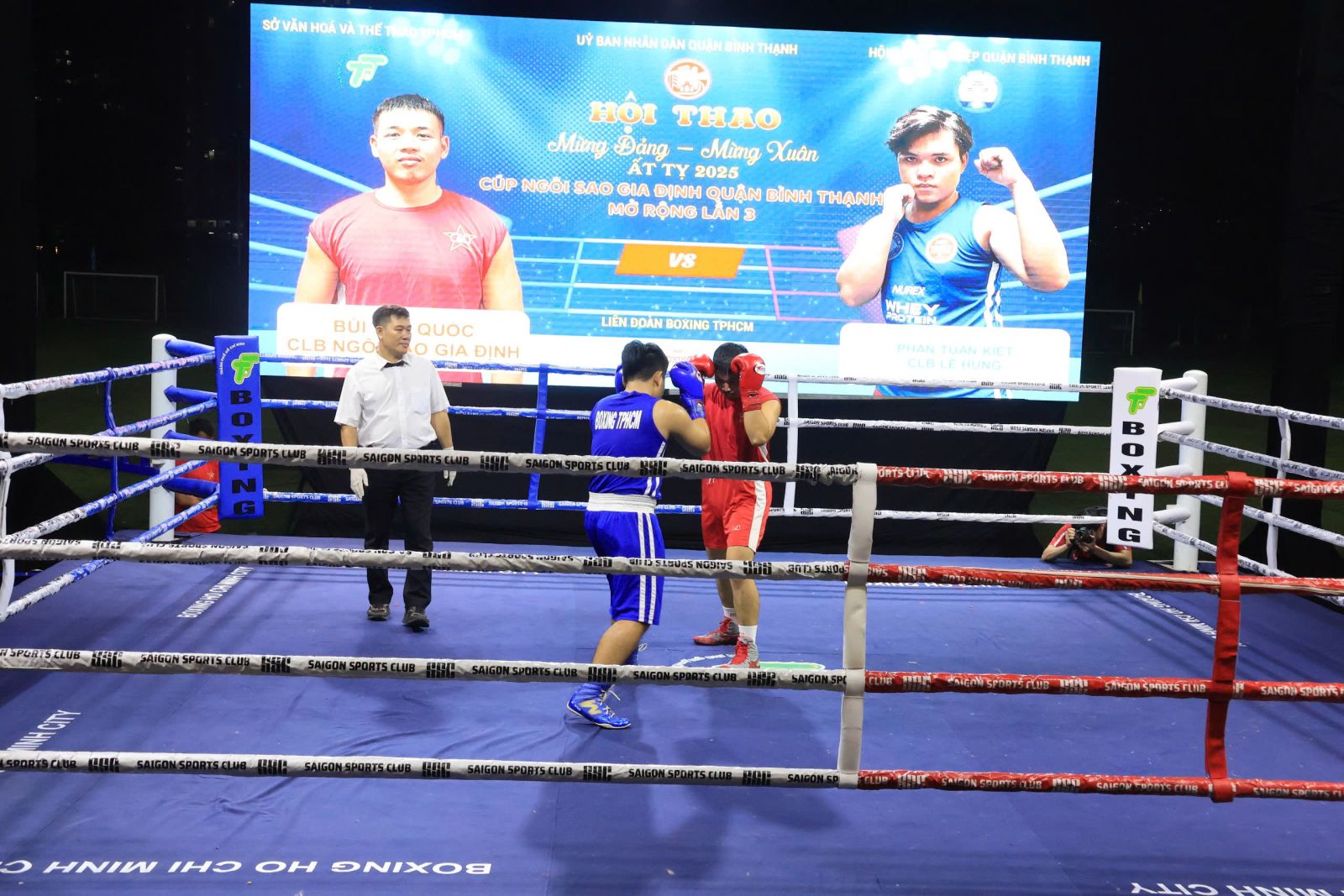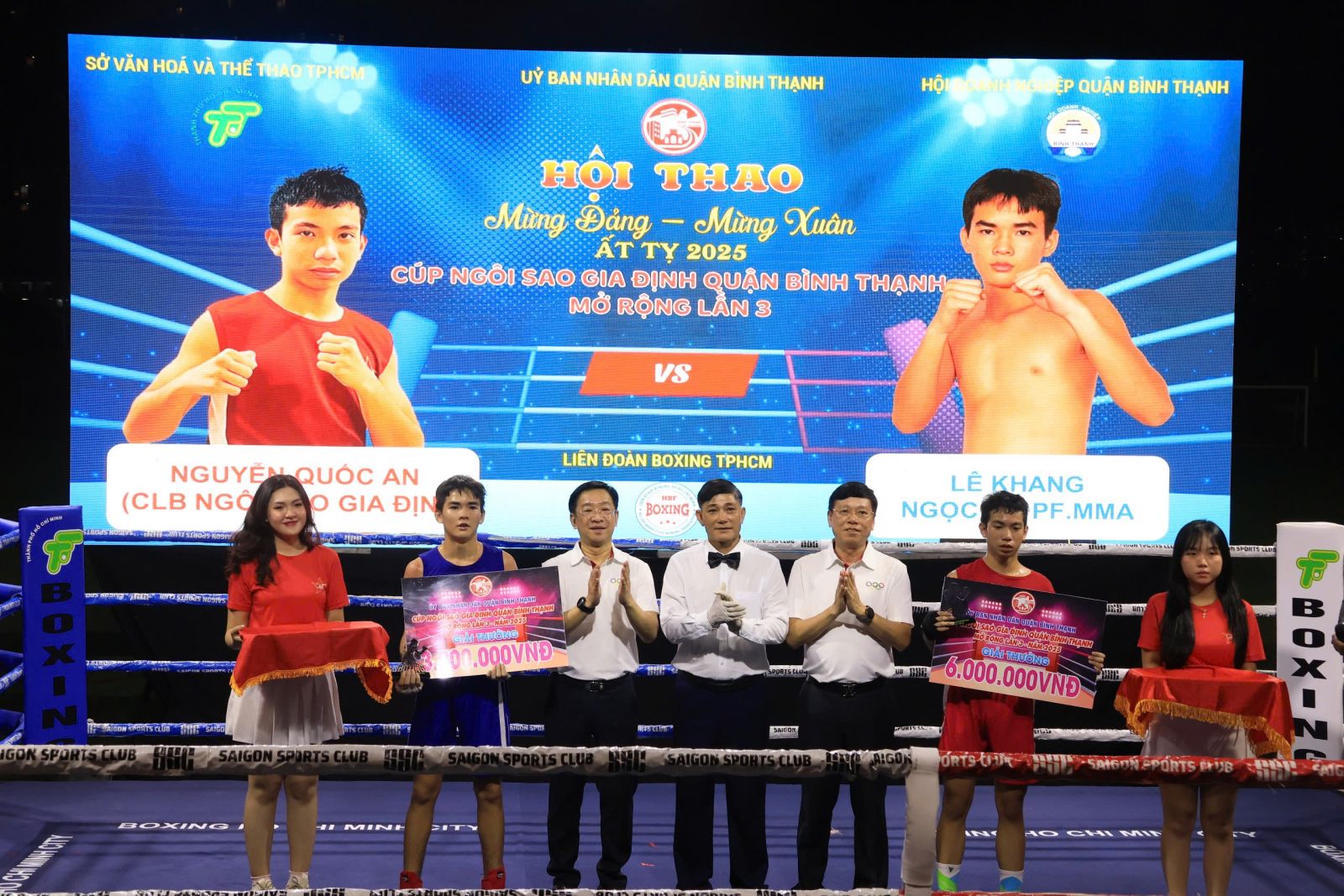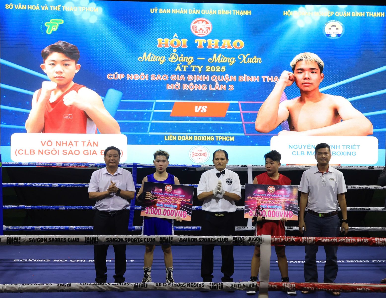 Dịp này, Hội Doanh nghiệp quận hỗ trợ 100 triệu đồng, công ty Cổ phần truyền thông Vinama hỗ trợ 50 triệu đồng, Khách sạn Q&A hỗ trợ 30 triệu đồng. Sau lễ khai mạc, hội thao diễn ra Giải Cúp Câu lạc bộ Quyền Anh Ngôi sao Gia Định quận Bình Thạnh mở rộng lần 3 năm 2025, với sự tham gia của 40 võ sĩ đến từ các câu lạc bộ trên địa bàn Thành, phố Hồ Chí Minh và các tỉnh Bình Dương, Đồng Nai, Đăk Lăk, Bình Định... Riêng câu lạc bộ Ngôi sao Gia Định quận Bình Thạnh có 16 võ sĩ tham gia. Trong đêm thi đấu đầu tiên diễn ra 10 trận đấu với 20 võ sĩ, trong đó có 6 võ sĩ thuộc câu lạc bộ Ngôi sao Gia Định. Kết quả, câu lạc bộ Ngôi sao Gia Định đấu thắng 5 trận. Giải đấu sẽ tiếp tục diễn ra vào lúc 19h, ngày 05/01/2025 với 10 trận đấu còn lại.