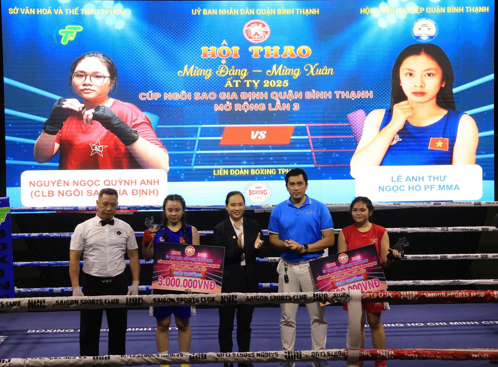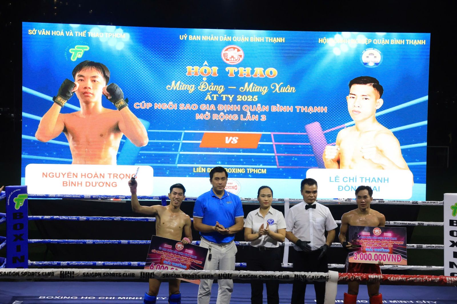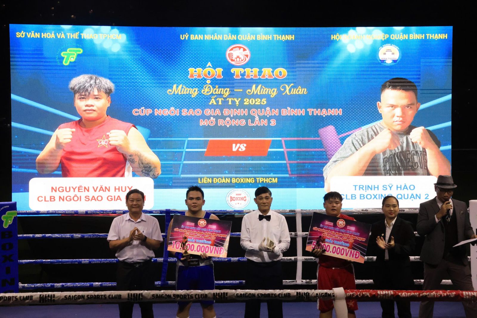 Dịp này, Hội Doanh nghiệp quận hỗ trợ 100 triệu đồng, công ty Cổ phần truyền thông Vinama hỗ trợ 50 triệu đồng, Khách sạn Q&A hỗ trợ 30 triệu đồng. Sau lễ khai mạc, hội thao diễn ra Giải Cúp Câu lạc bộ Quyền Anh Ngôi sao Gia Định quận Bình Thạnh mở rộng lần 3 năm 2025, với sự tham gia của 40 võ sĩ đến từ các câu lạc bộ trên địa bàn Thành, phố Hồ Chí Minh và các tỉnh Bình Dương, Đồng Nai, Đăk Lăk, Bình Định... Riêng câu lạc bộ Ngôi sao Gia Định quận Bình Thạnh có 16 võ sĩ tham gia. Trong đêm thi đấu đầu tiên diễn ra 10 trận đấu với 20 võ sĩ, trong đó có 6 võ sĩ thuộc câu lạc bộ Ngôi sao Gia Định. Kết quả, câu lạc bộ Ngôi sao Gia Định đấu thắng 5 trận. Giải đấu sẽ tiếp tục diễn ra vào lúc 19h, ngày 05/01/2025 với 10 trận đấu còn lại.