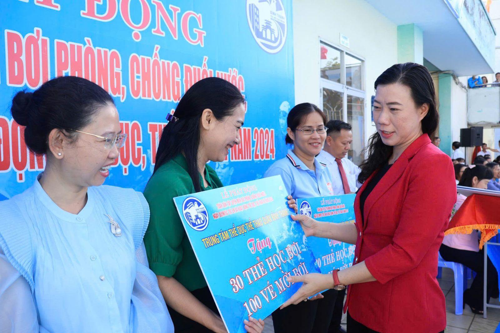 + Chương trình đã trao 600 thẻ học bơi, 2.000 vé bơi miễn phí cho các đơn vị phường.