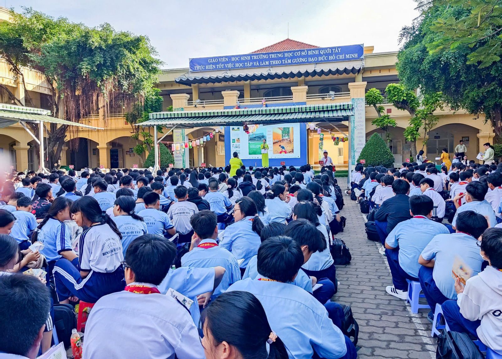 Sáng ngày 06/10/2025, Trung tâm Cung ứng dịch vụ văn hóa - thể thao phường Bình Thạnh phối hợp Trường THCS Bình Quới Tây tổ chức liên hoan phim khoa học cho gần 800 thầy cô giáo và các em học sinh Trường THCS Bình Quới Tây.