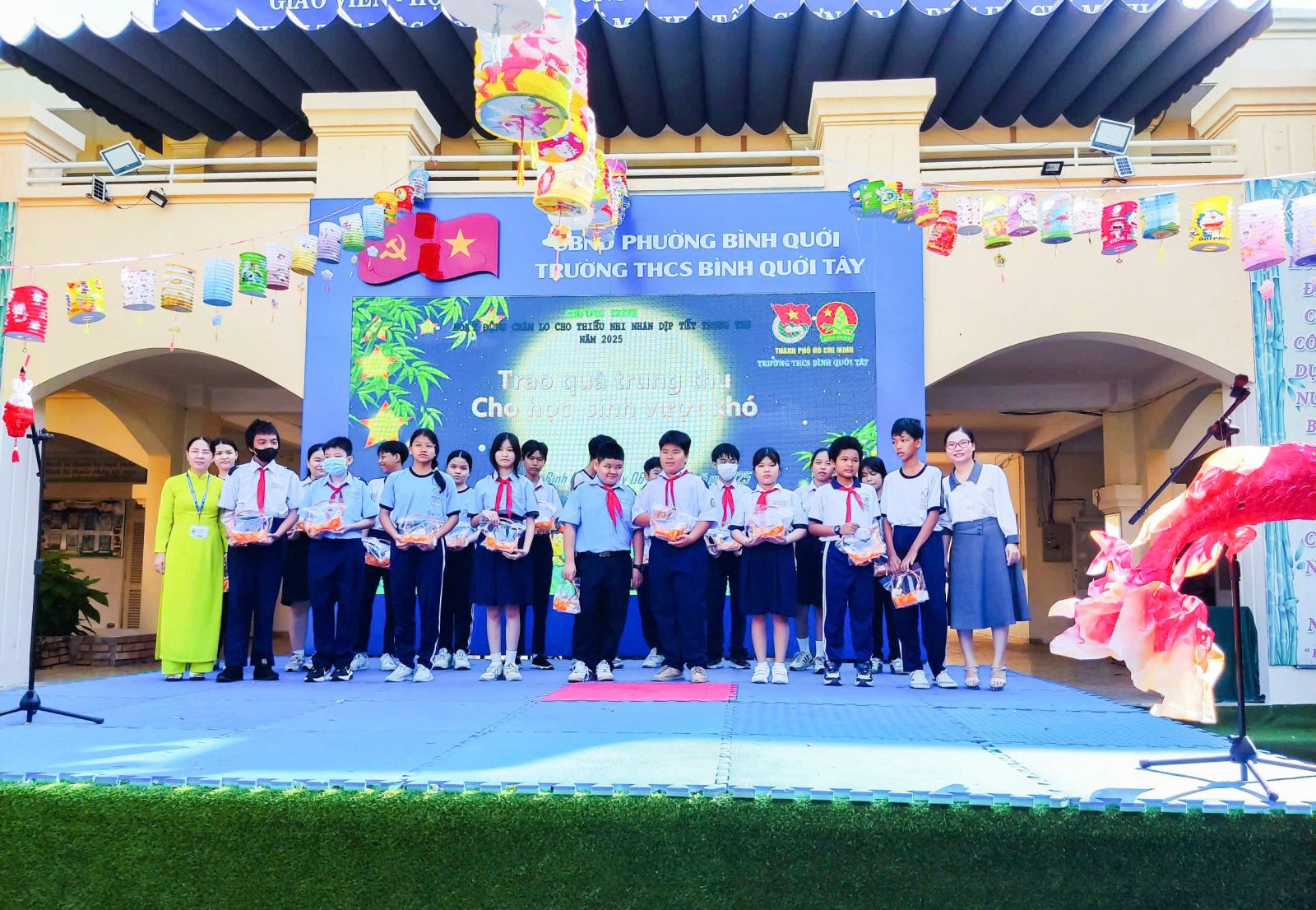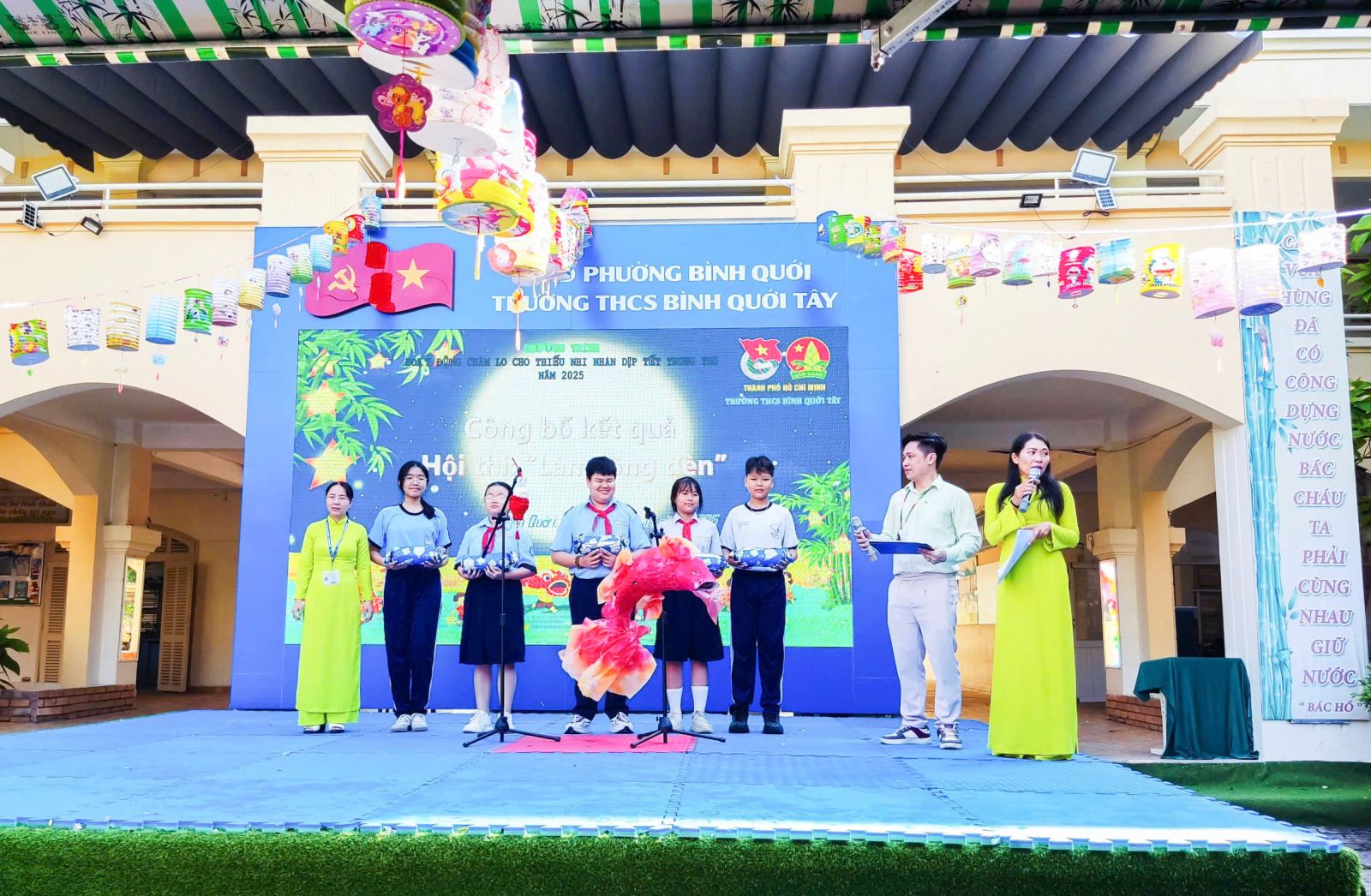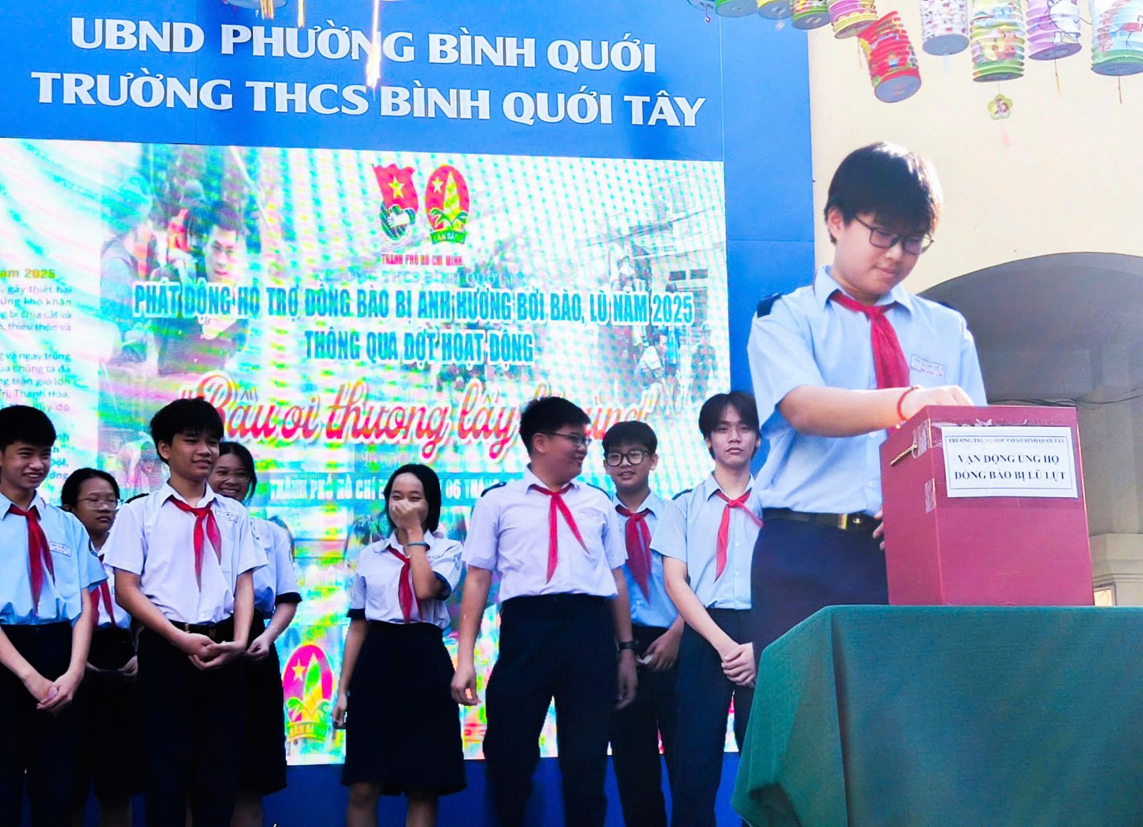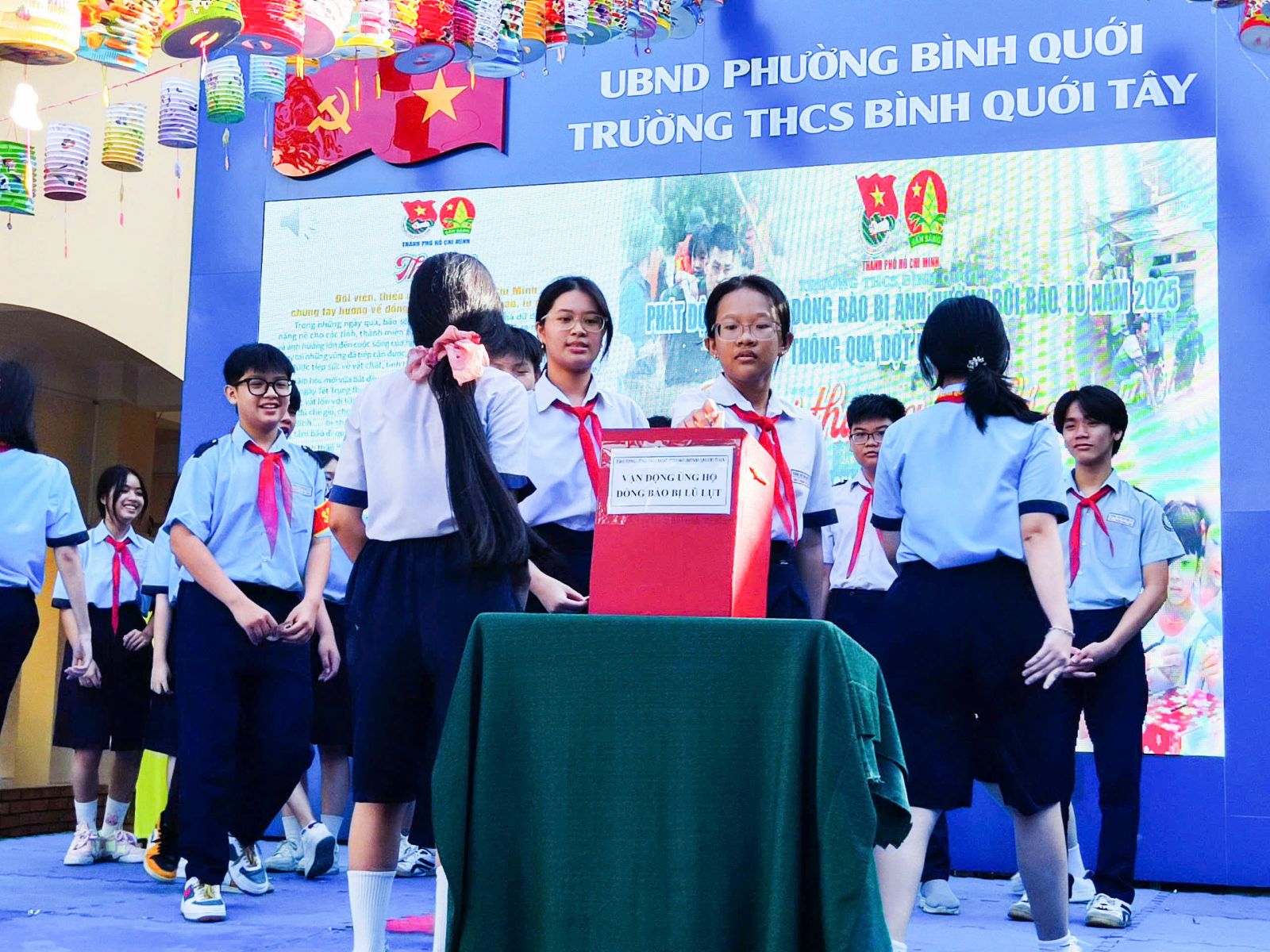 Dịp này, Ban chấp hành Công đoàn Trường THCS Bình Quới Tây còn kết hợp tổ chức phát động cán bộ, giáo viên, người lao động và học sinh của trường cùng chung tay ủng hộ đồng bào bị ảnh hưởng do bão lũ gây ra với tinh thần tương thân, tương ái “Bầu ơi thương lấy bí cùng”. Ngoài ra, Ban Chấp hành Đoàn trường tổ chức trao giải hội thi làm lồng đèn và chăm cho các em học sinh có hoàn cảnh khó khăn nhân dịp tết Trung thu.