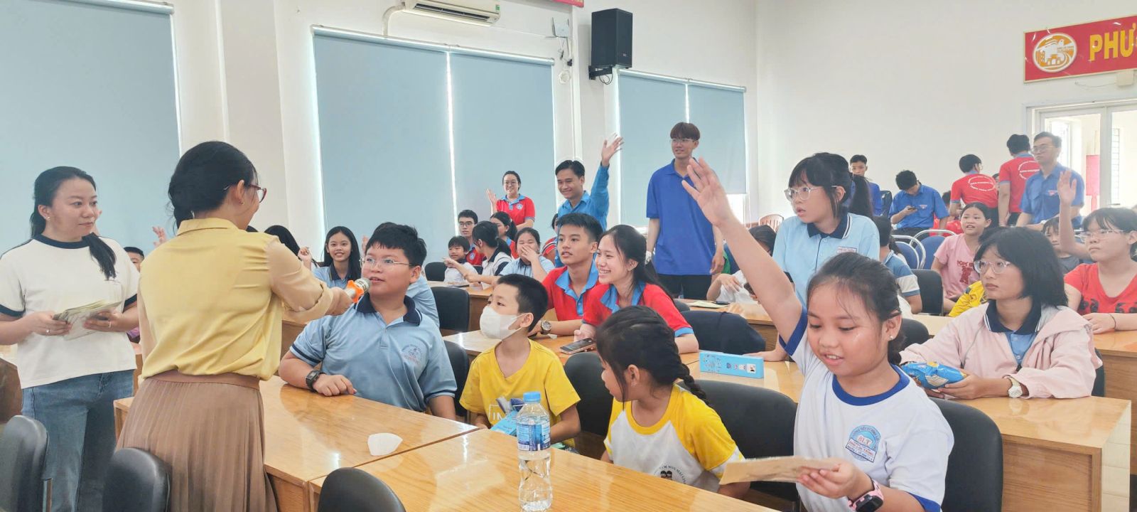 Ngoài xem phim, các em còn được tham gia 2 trò chơi đuổi hình bắt chữ, nhìn biểu tượng đoán câu chuyện. Các em tham gia có câu trả lời đúng để nhận về những phần quà hấp dẫn từ ban tổ chức.