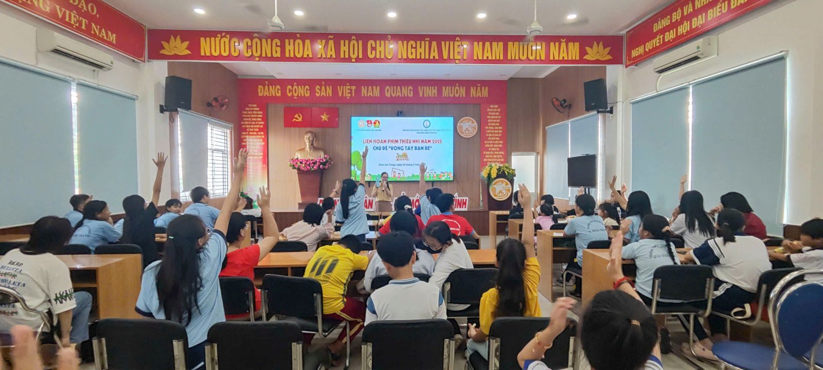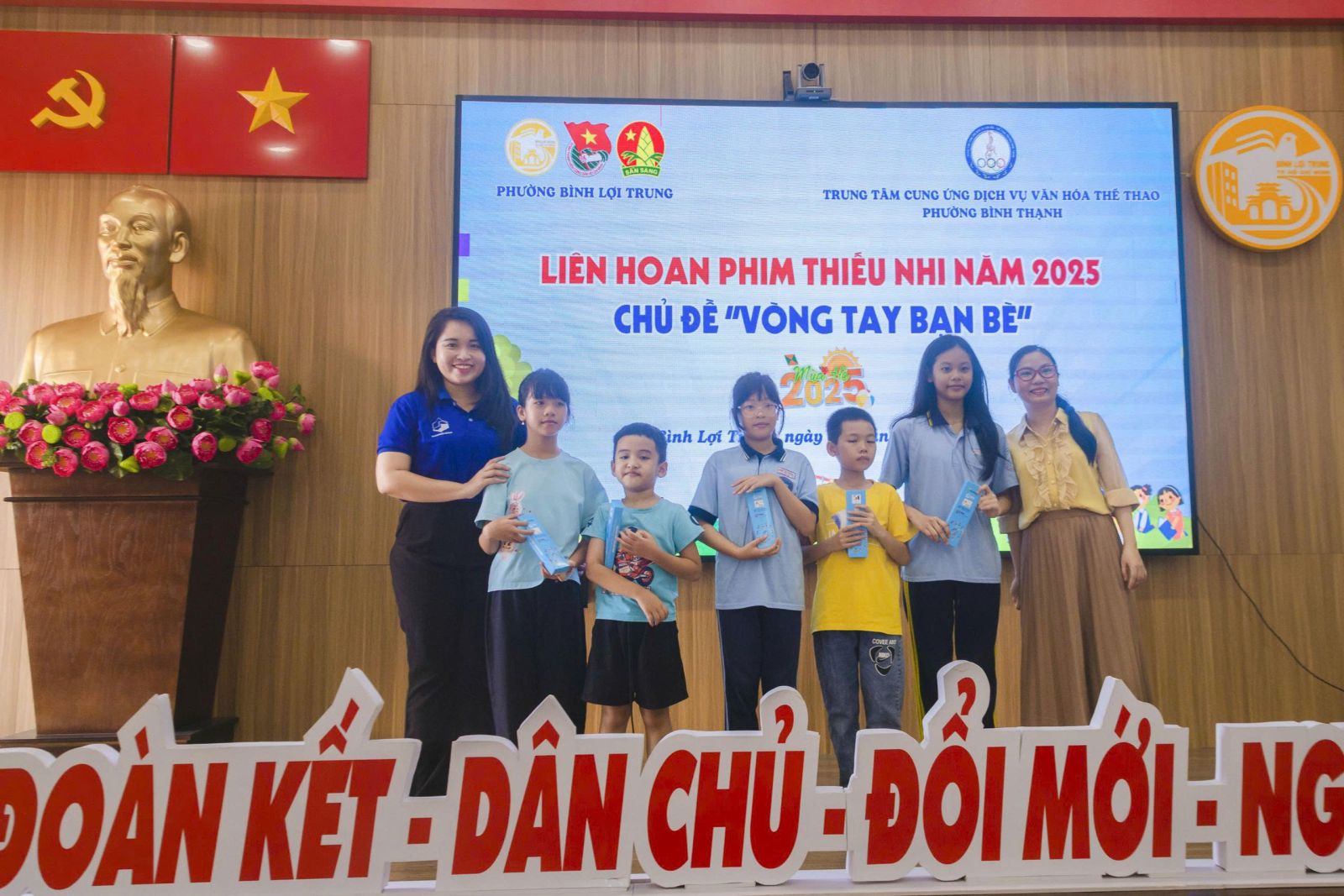 Ngày 03/8/2025, phường Bình Lợi Trung phối hợp Trung tâm Cung ứng dịch vụ văn hóa - thể thao phường Bình Thạnh tổ chức liên hoan phim thiếu nhi năm 2025 chủ đề “Vòng tay bạn bè” cho trên 80 thiếu nhi, đoàn viên thanh niên phường Bình Lợi Trung và chiến sĩ Hoa phượng đỏ Trường THPT Trần Văn Giàu tham dự xem 2 bộ phim ngắn “Ngày tôi gặp đúng người” và “Bạn đã từng nghe nói đến điều này?”.