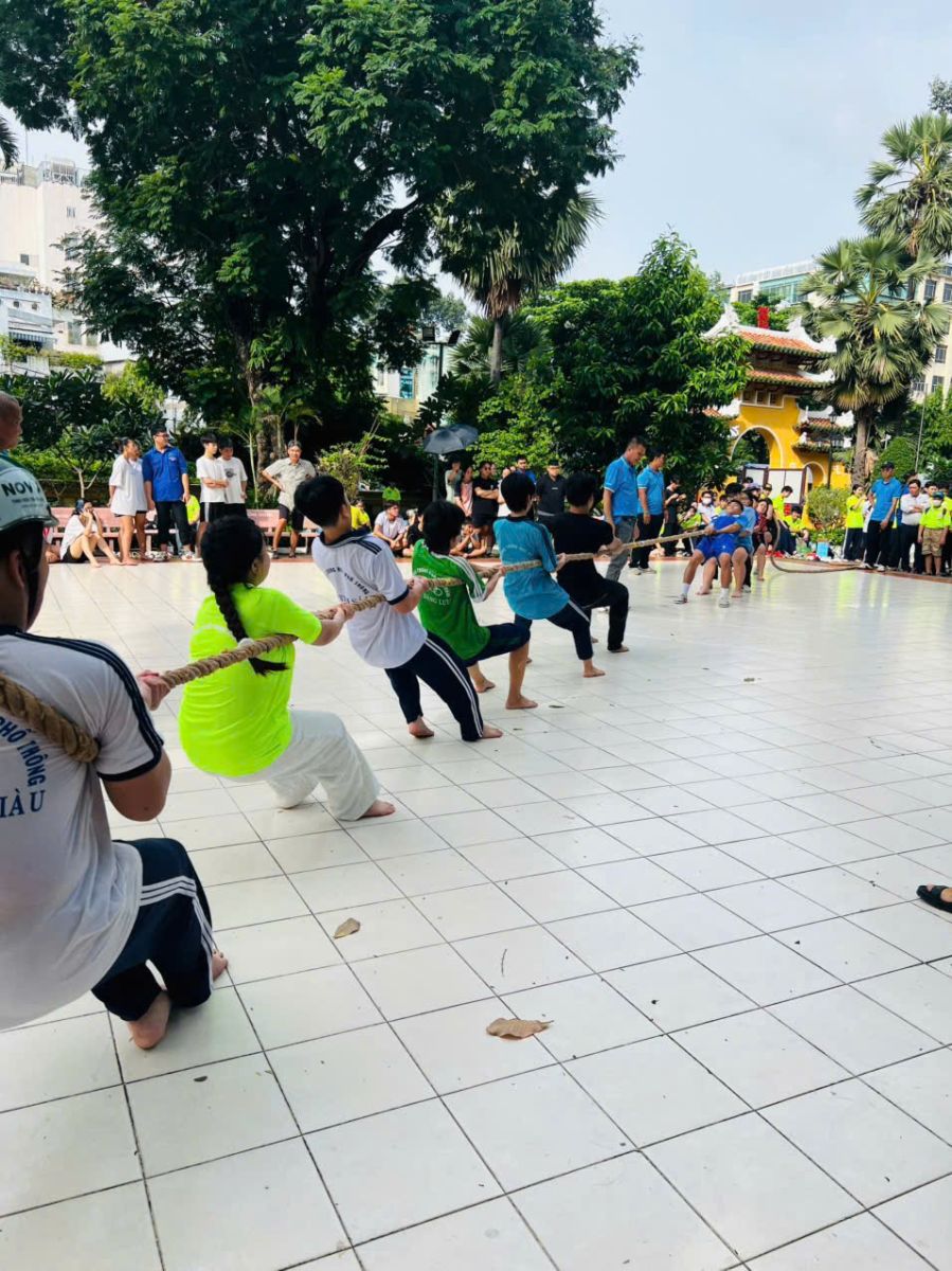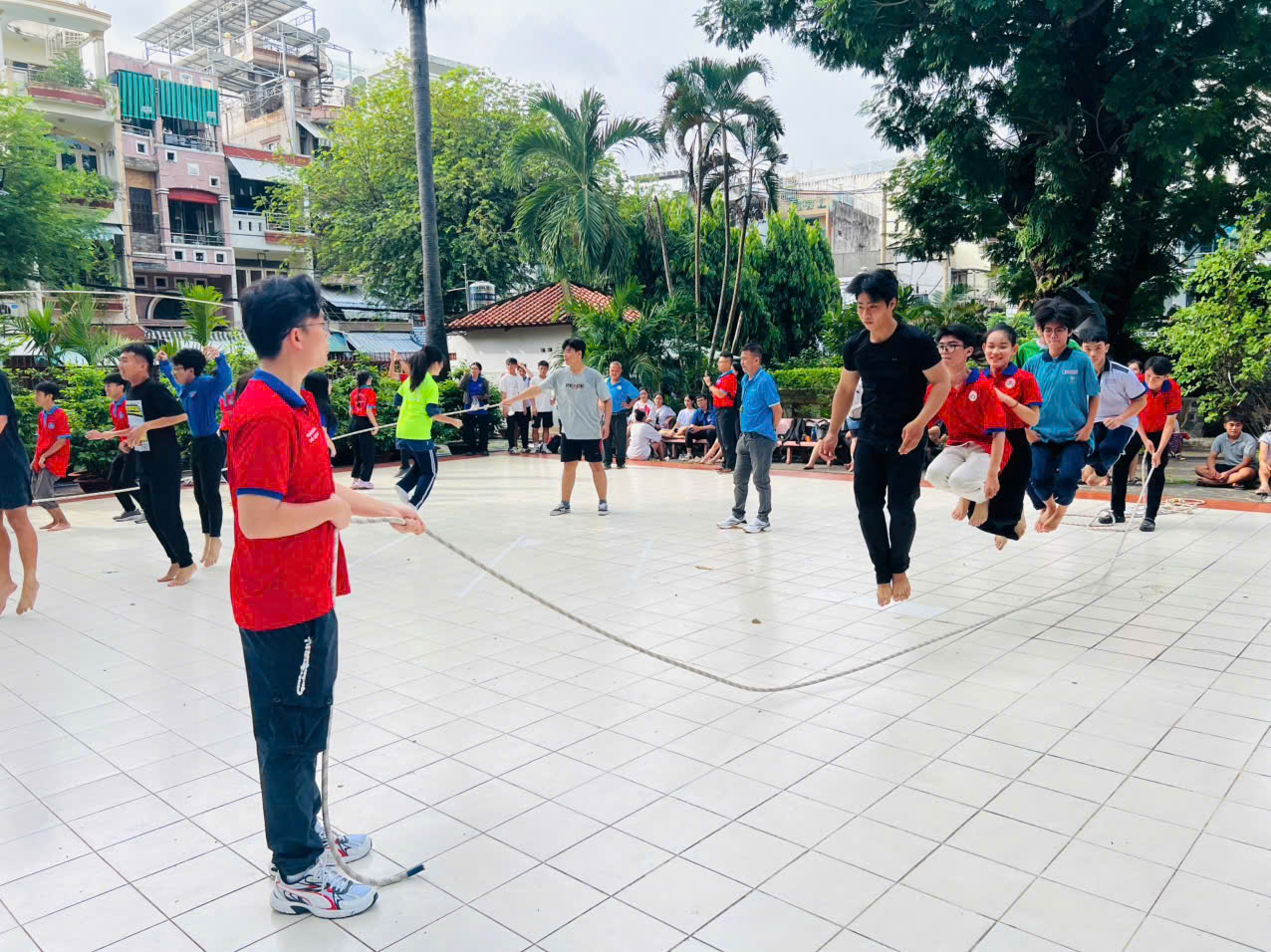 Hội thao diễn ra sôi nổi với 2 nội dung thi đấu: Nhảy dây tập thể và Kéo co – những môn thể thao truyền thống giúp rèn luyện thể chất, tinh thần đồng đội và tạo sân chơi lành mạnh cho thanh thiếu nhi trong dịp hè.