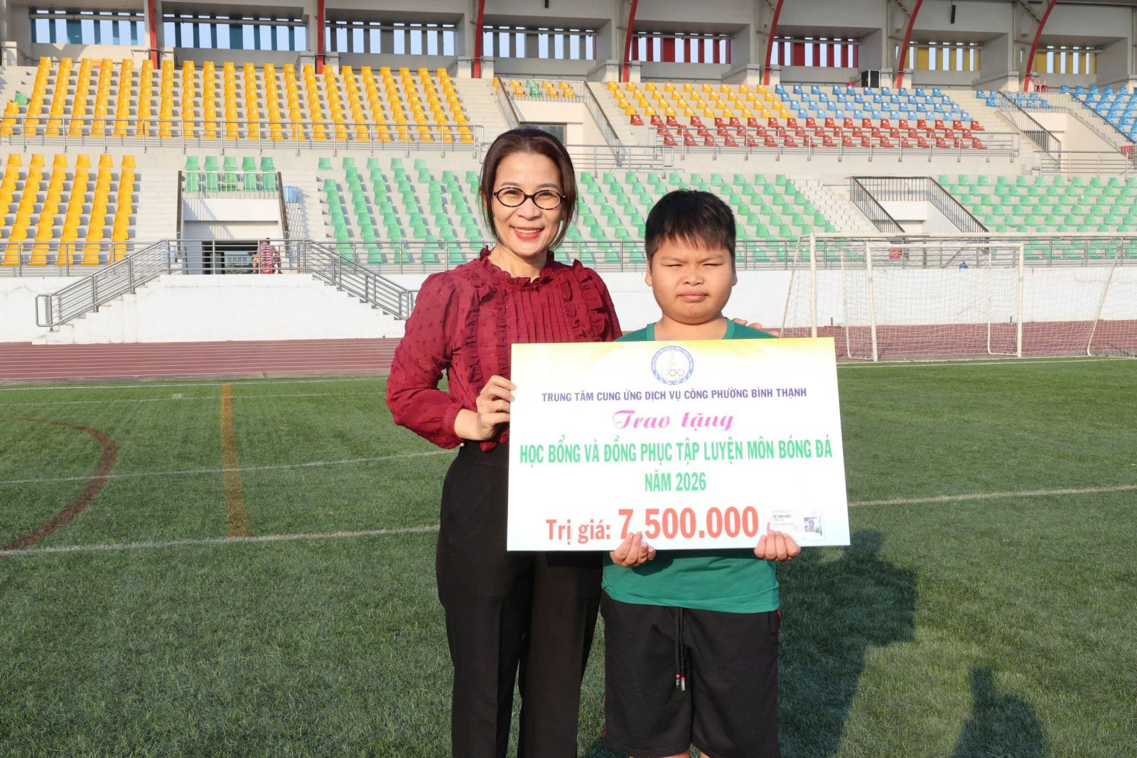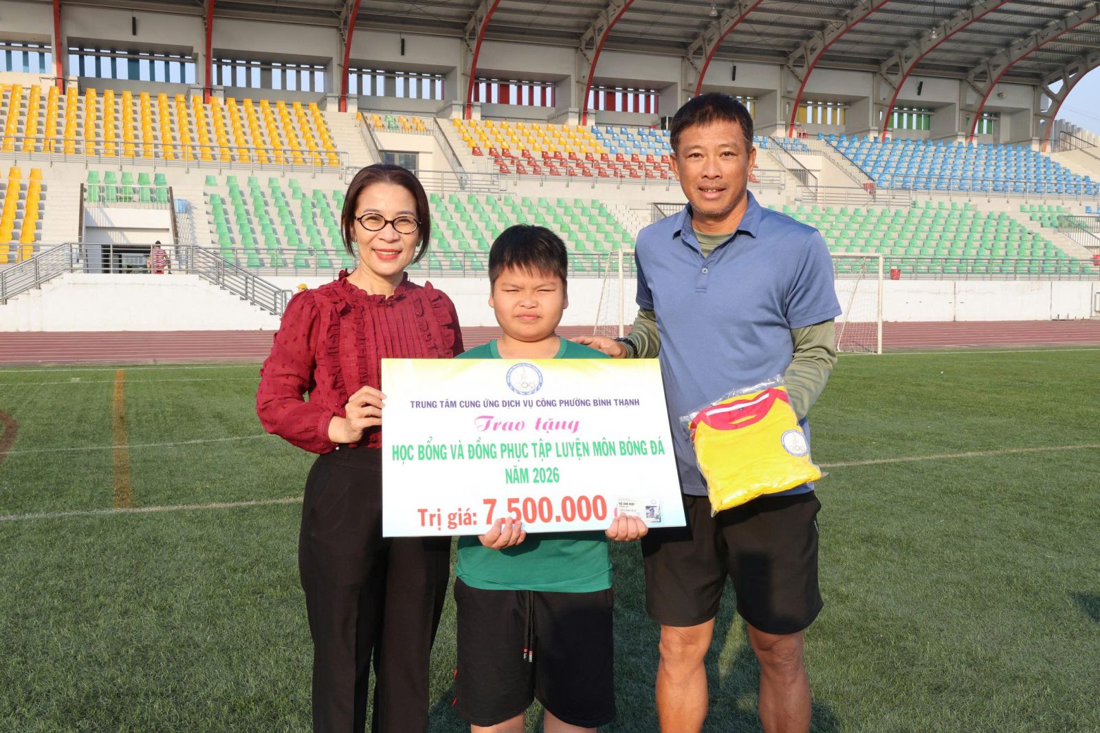 Sáng ngày 10/01/2026, tại Sân vận động Gia Định, Trung tâm Cung ứng dịch vụ công phường Bình Thạnh tổ chức trao học bổng và đồng phục tập luyện môn bóng đá cho em Nguyễn Hoàng Tấn Lộc, học sinh có hoàn cảnh khó khăn. Qua đó thể hiện sự quan tâm, đồng hành của địa phương trong công tác chăm lo cho thiếu nhi, đặc biệt là các em có ý chí vươn lên trong học tập và rèn luyện thể thao.